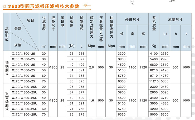 800型橡膠隔膜壓榨式壓濾機