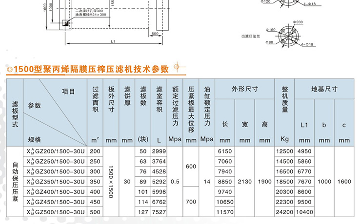 1500型聚丙烯隔膜壓榨壓濾機