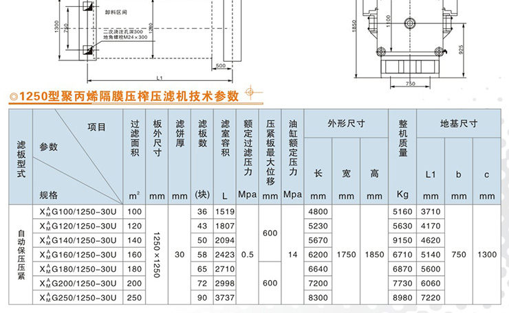 1250型聚丙烯隔膜壓榨壓濾機(jī)