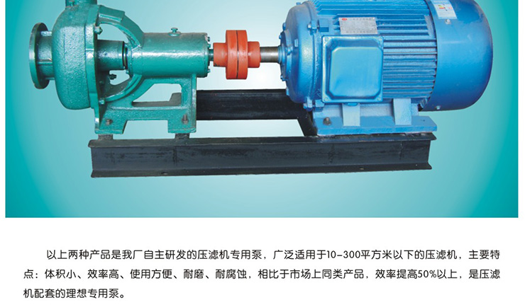 產(chǎn)品描述:ZJ型壓濾機入料泵采用獨特的水力設(shè)計及葉輪安裝方式,確保了其性能曲線比一-般雜質(zhì)泵更陡,非常適合壓濾機入料時應阻力的變化來實現(xiàn)大流量,低壓力喂料與小流量,高壓力過濾的目的。